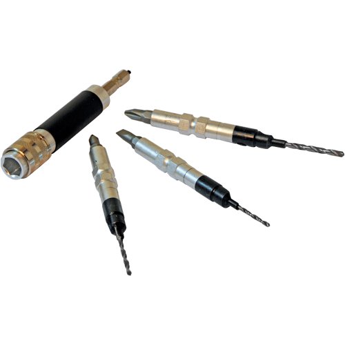 - l'ensemble comprend 1 adaptateur double extrémité magnétique et 3 embouts à fonction foret et vissage pour vis de calibre 6, 8 et 10