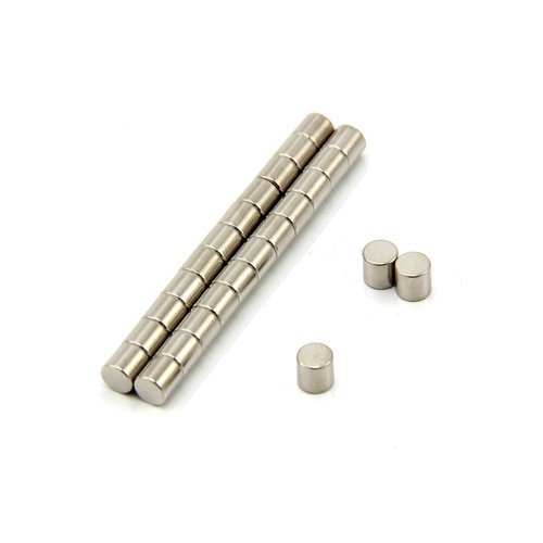Pack de 25 de diamètre 4mm x 4 mm d'épaisseur, nord de l'aimant et le pôle Sud sont sur les faces opposées de diamètre 4mm Chaque aimant peut supporter un poids d'acier jusqu'à 0,5 kg verticalement à partir de la face magnétique lorsque affleurés avec une surface d'acier douce excellente résistance à la désaimantation couché avec trois couches de nickel, cuivre et nickel pour réduire la corrosion et offrir une surface lisse et Surfilez les aimants en néodyme à ces disques peuvent être petits, mais ils ont une étonnante Tirez de 0,5 kg. Chaque aimant est recouvert de trois couches de nickel, de cuivre et de nickel à réduire la corrosion et offrir une surface lisse et Surfilez. Nos aimants néodyme ont de nombreuses utilisations créatives, y compris la modélisation et la scénographie, la fabrication, expositions, présentoirs et emballages de meubles. Ils ont également beaucoup d'utilisations dans l'ingénierie et de fabrication où la petite taille et force maximale sont nécessaires, en fait deux aimants néodyme mutuellement attirera avec deux fois la force qu'elles attirent en acier.